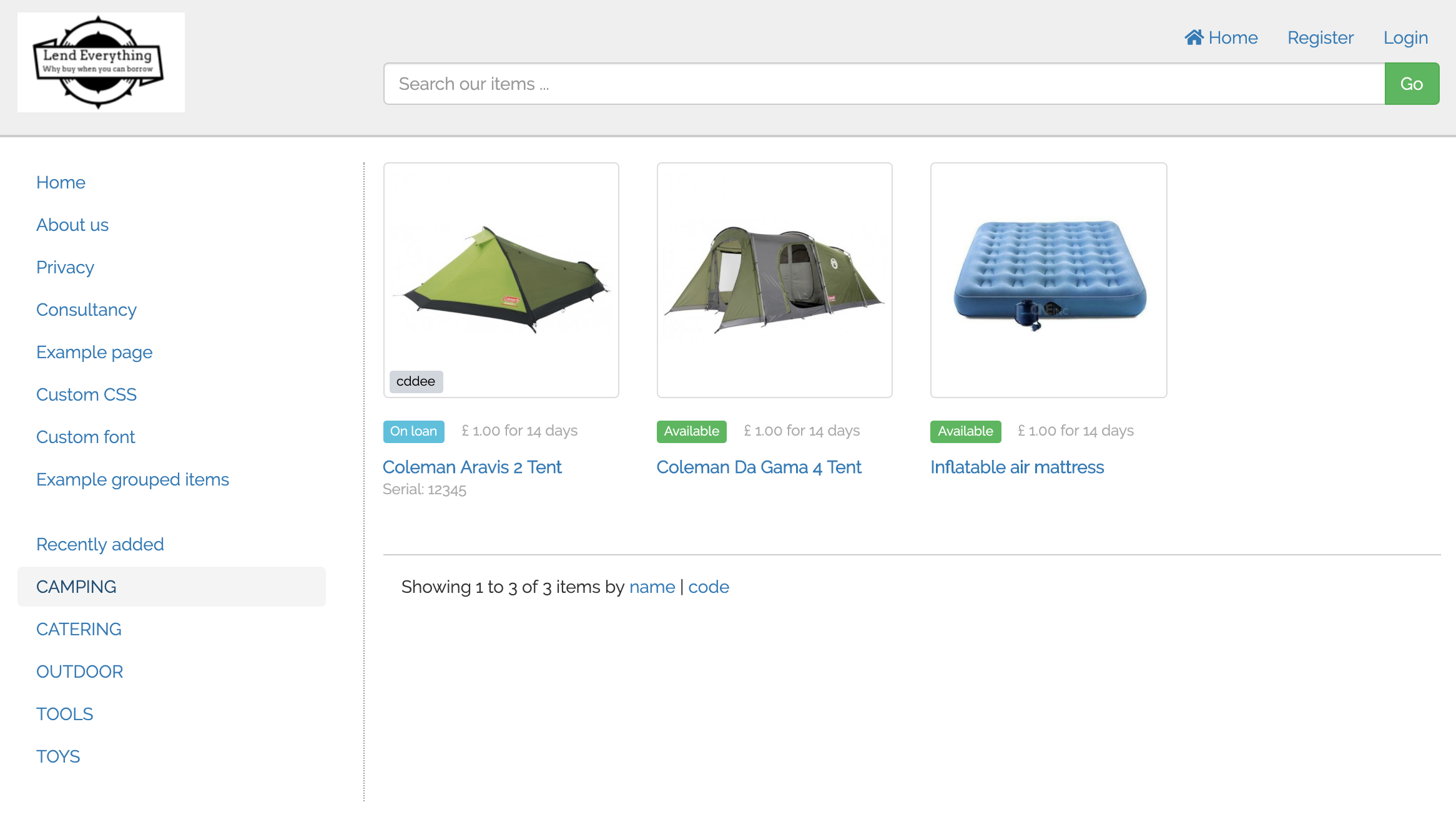 We've built an example site to show you how some of the features can be used. Feel free to browse around, register and reserve items.